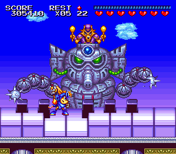 Elephant Robot (unofficial name) is the fifth midboss from Sparkster (SNES).