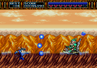 These Pig-piloted jetskis appear on Stage 2, right after the fight against the Raccoon Robot. They'll shoot a three-way blue shot from a distance, moving forward when Sparkster approaches them. Their shots can be destroyed, and they can be taken down easily as well.