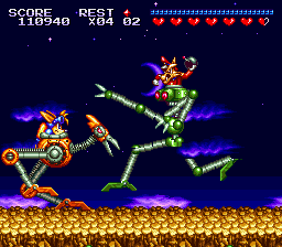 Wolfheim Robot (unofficial name) is the third midboss from Sparkster (SNES).